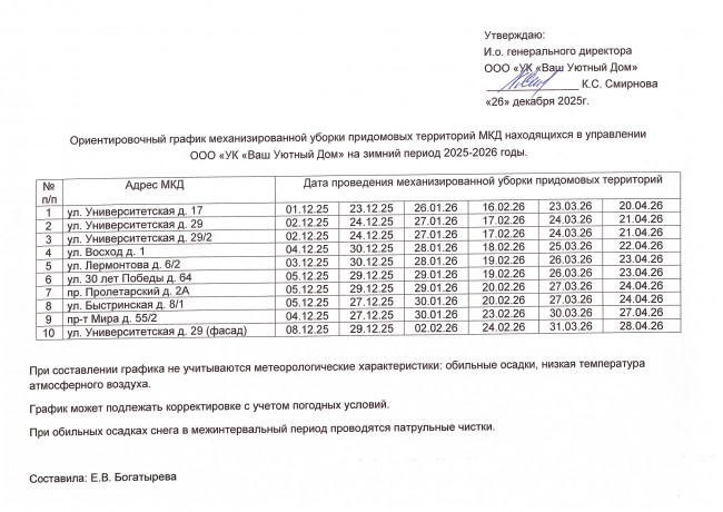 Корректировка графика механизированной уборки